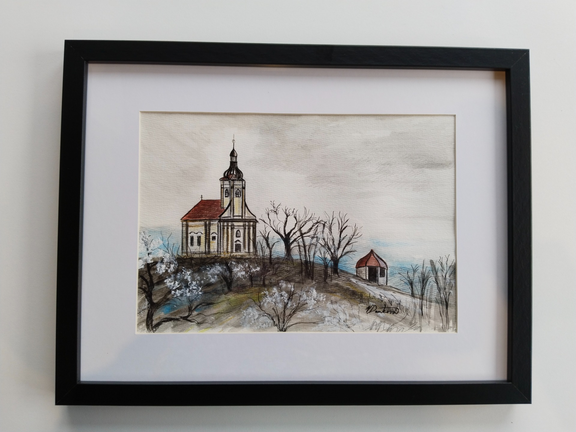 Velikost malby s paspartou a rámem 42,7x32,7