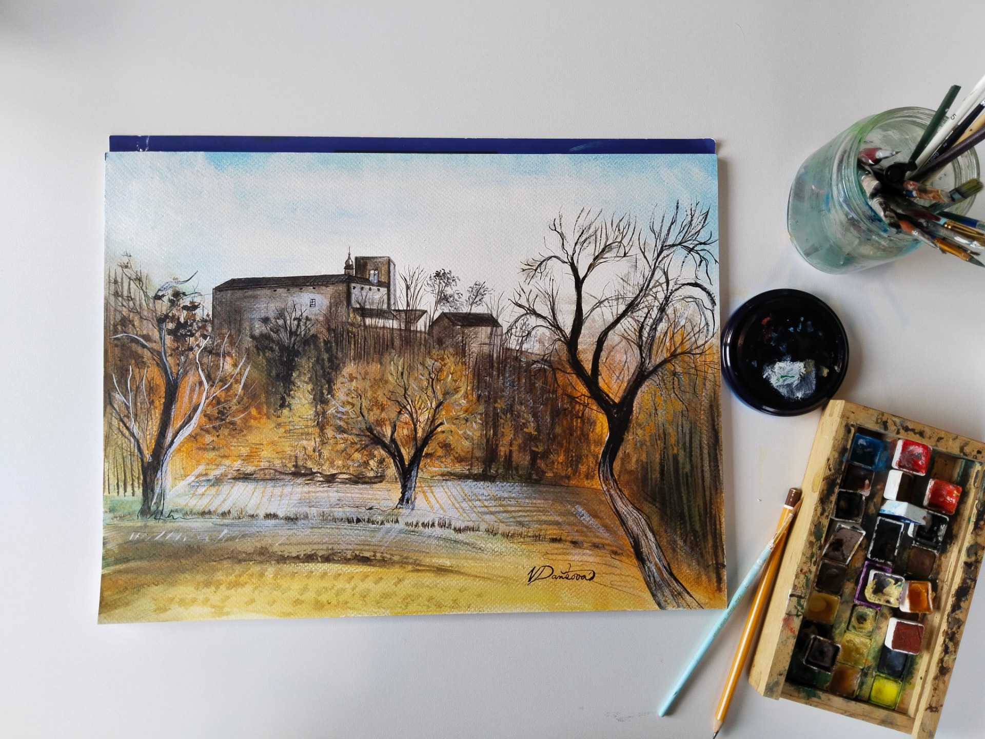 Technika: akvarel, tuš
