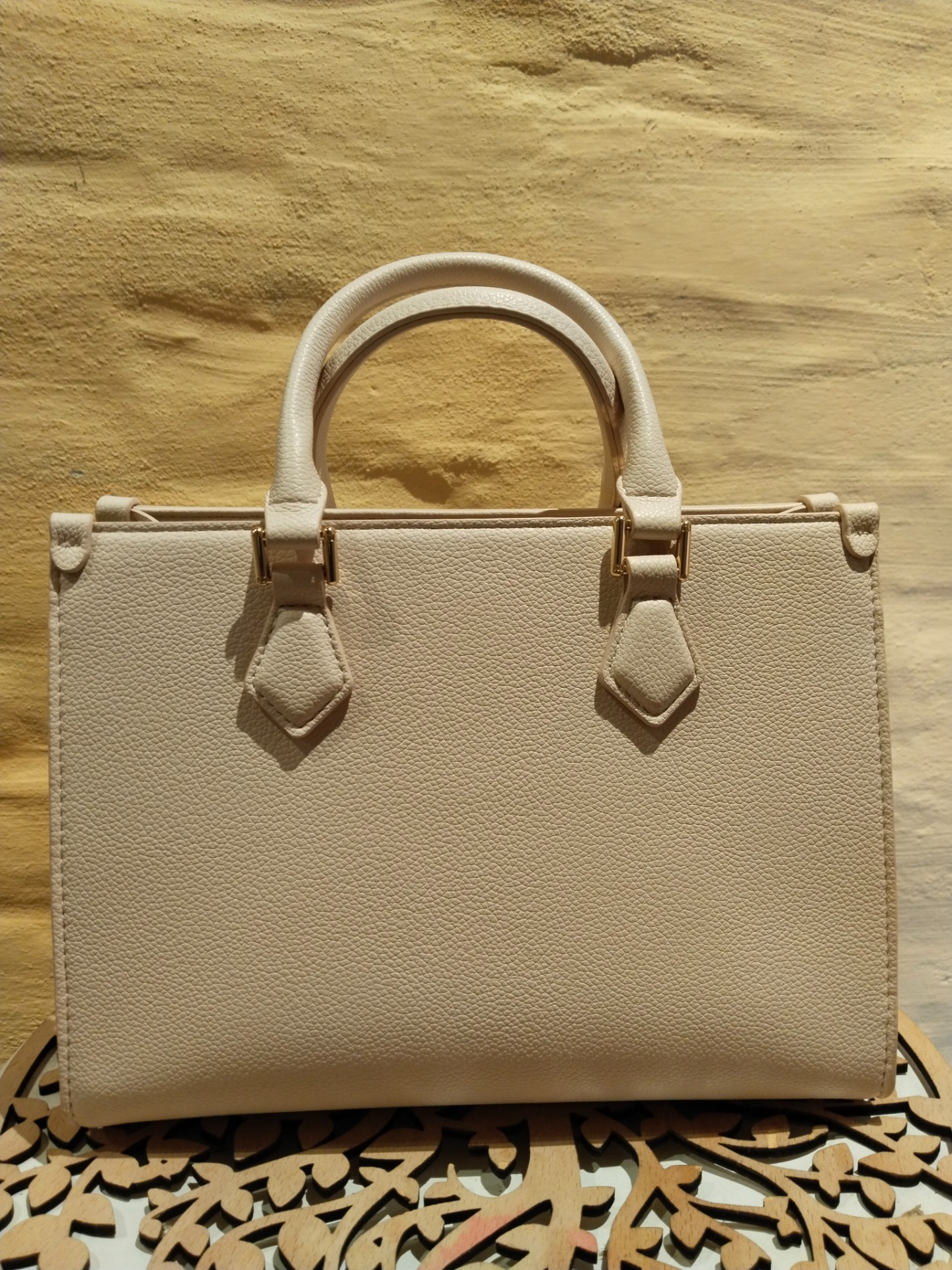 Rozměry: 25,5x19x11, syntetická kůže, zlaté kování, pevná drží tvar. Díky odnímatelnému popruhu ji lze snadno přizpůsobit i na nošení přes rameno nebo jako crossbody. Pro lepší uspořádání vnitřního prostoru poslouží kapsičky v podšívce. Kabelka je zajištěna zipem.