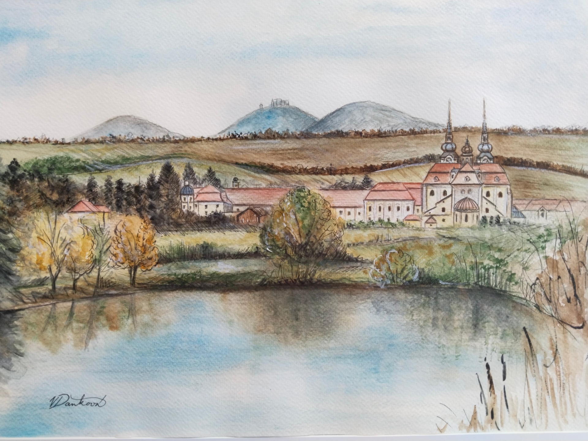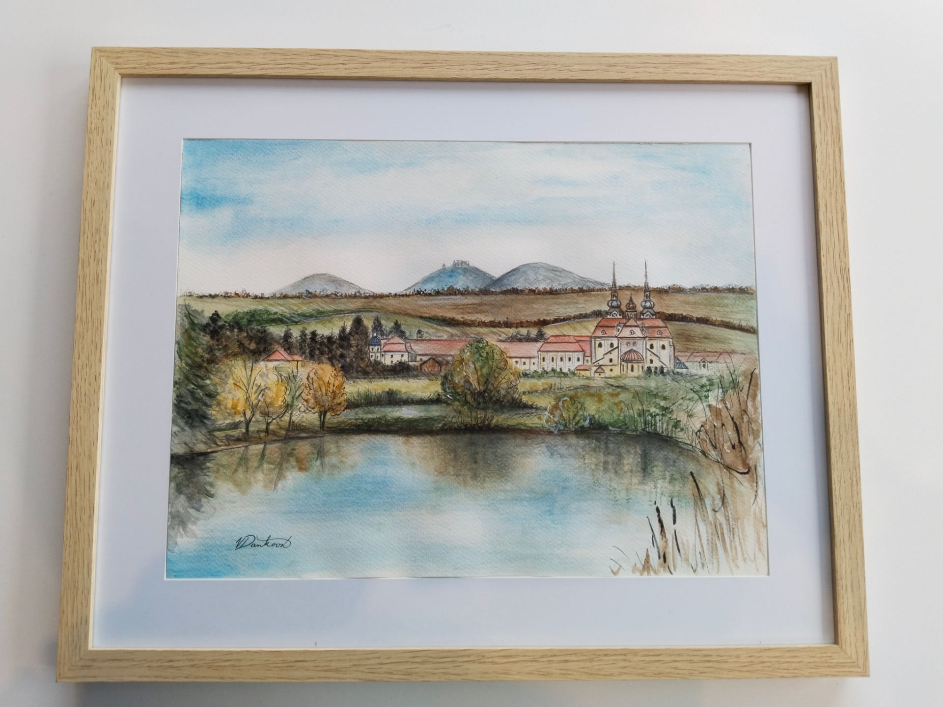 Nabízím malbu Baziliky Nanebevzetí Panny Marie. Oblíbený pohled od rybníků. V pozadí Holý kopec, hrad Buchlov, Barborka).